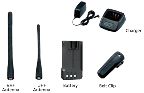 The TK-2000/3000 is ready for use immediately after purchase. It comes with all necessary accessories, including a charger, battery pack and antenna. A handy belt clip is also provided. There is no need to buy extra accessories for normal operation.