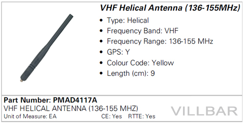 | Frequency range. | VHF: 136-174 MHz. UHF1: 403-527 MHz. |